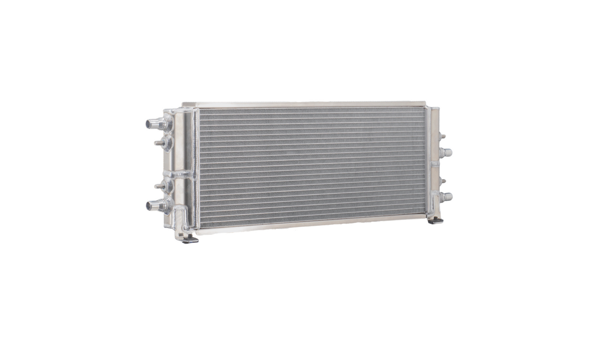 Designed for seamless OE-style installation, the heat exchanger fits directly in the factory location without requiring modifications. It tucks neatly under the core support between the radiator and the upper plastic core support cover while utilizing factory hoses, clamps, and mounting hardware, making installation straightforward and efficient.