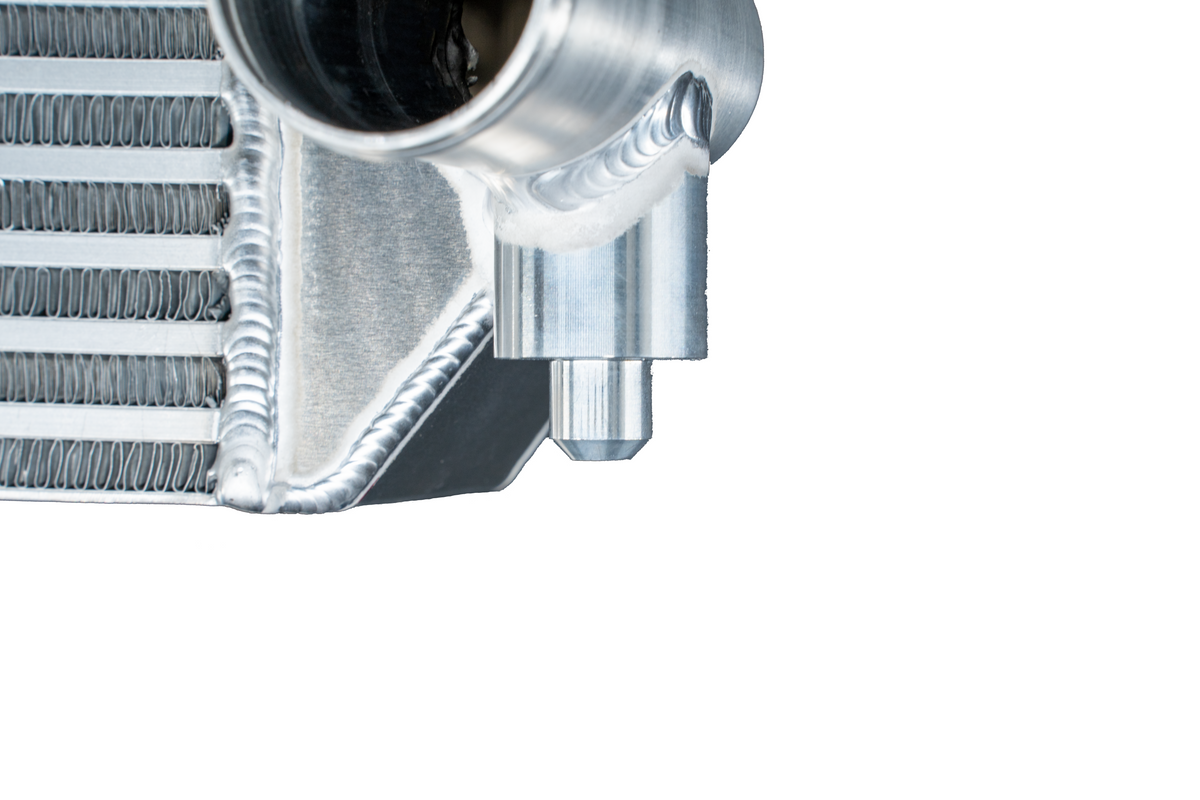 Unlike the stock GR Corolla intercooler, which features one cast aluminum tank and one plastic tank that struggle to handle increased boost from the turbocharger and are prone to cracking, our intercooler is professionally TIG welded in the USA, providing greater structural rigidity and durability.